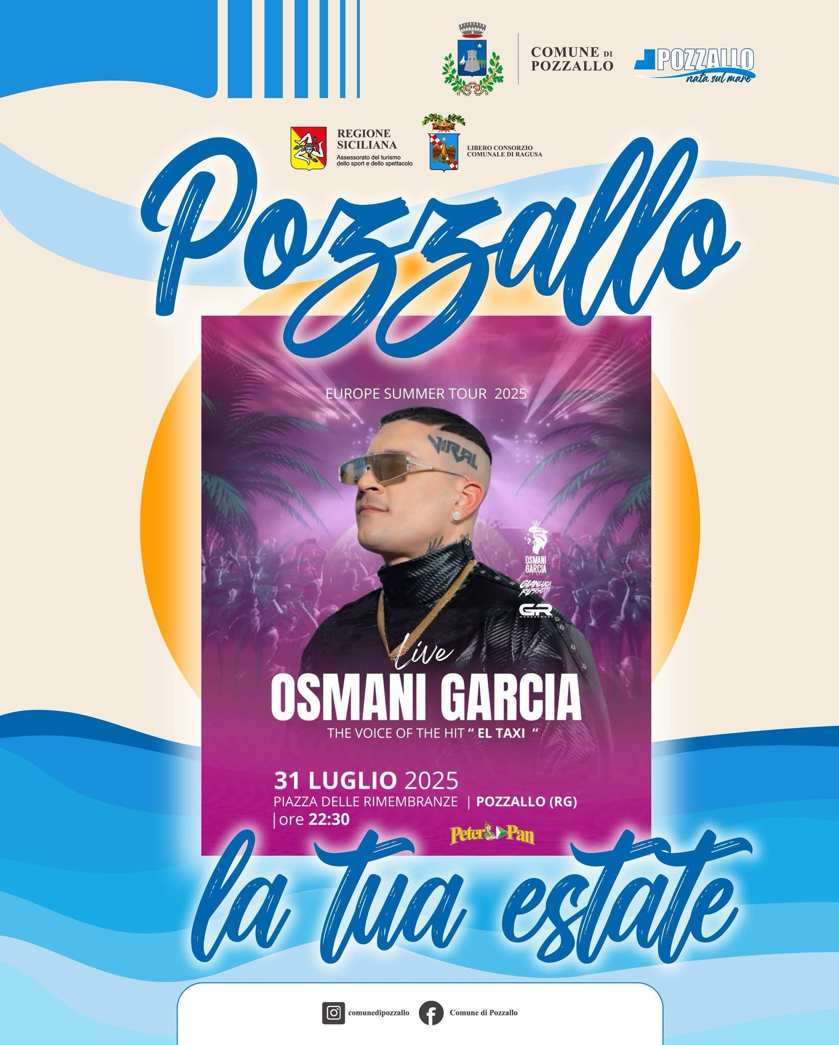 Osmani Garcia - The voice of the hit "El Taxi" 31 luglio 2025 Piazza delle Rimembranze ore 22:30