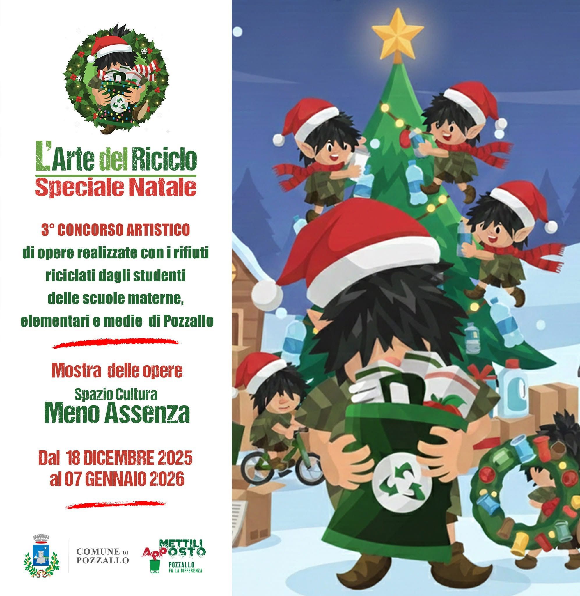 3° Concorso artistico di oper realizzate con i rifiuti riciclati dagli studenti delle scuole materne, elementari e medie di Pozzallo. Spazio Cultura Meno Assenza dal 18 dicembre al 7 gennaio.